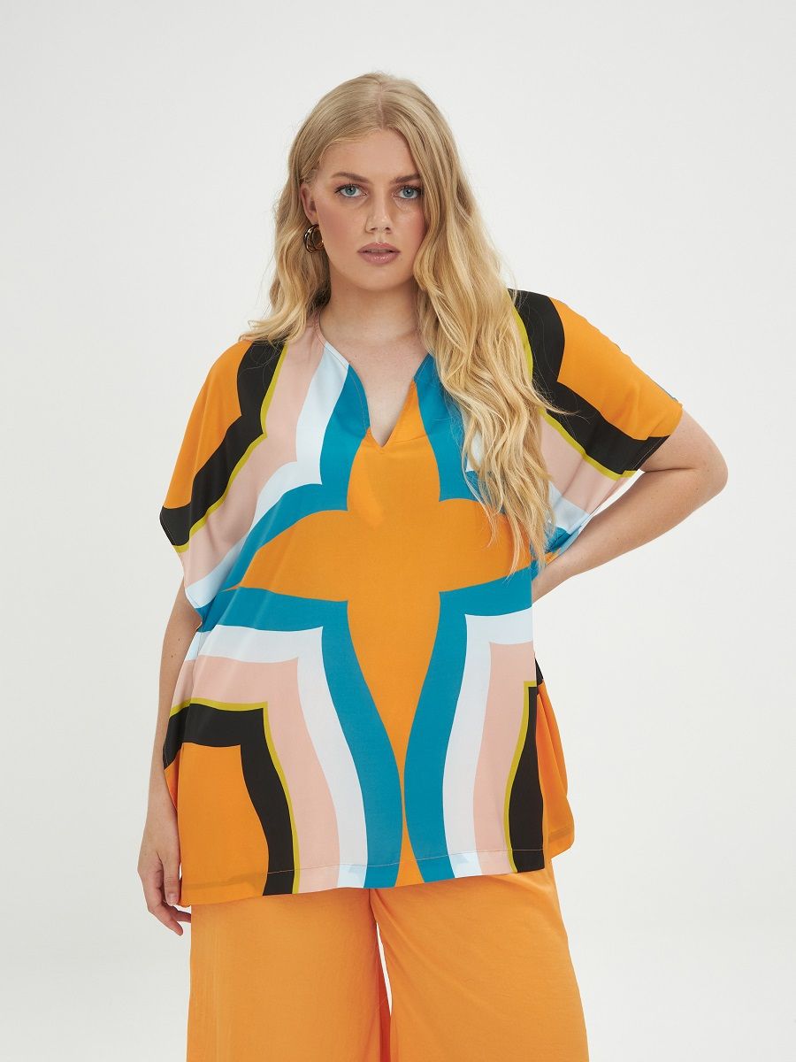 Яркая летняя блуза с красочным принтом