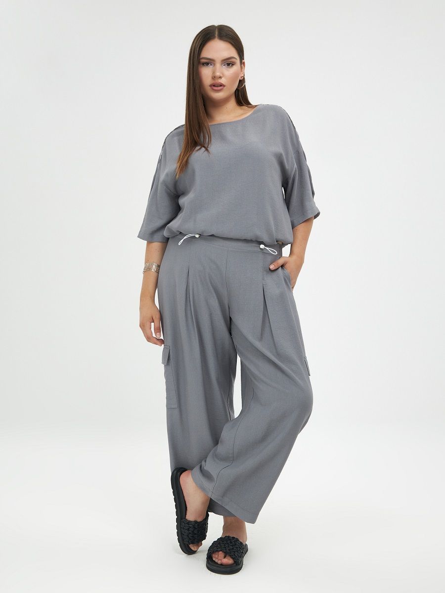 Брюки летние серые с карманами для полных женщин