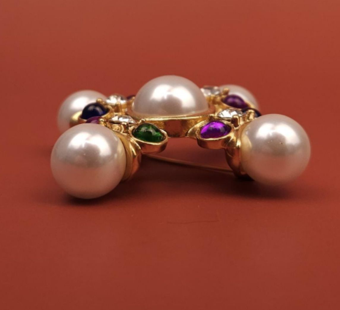 Изяшное украшение среднего размера с кристаллами и жемчугом майорика