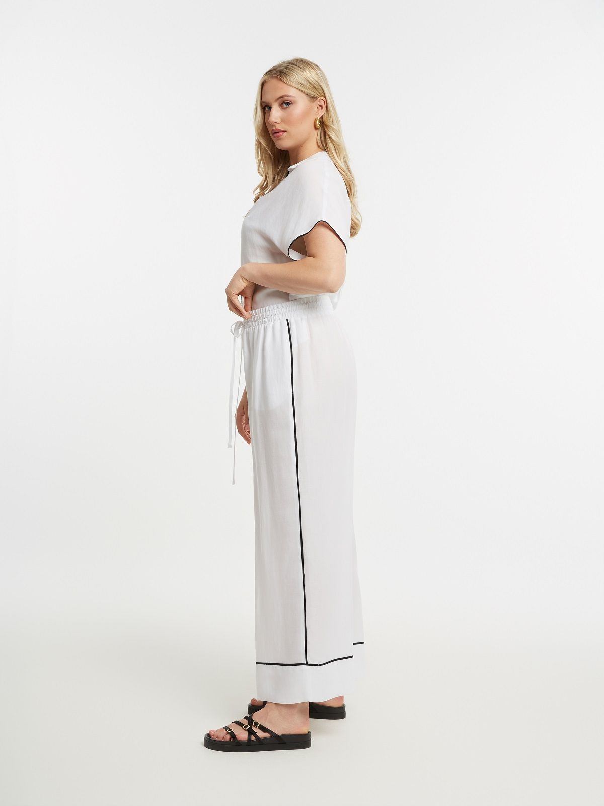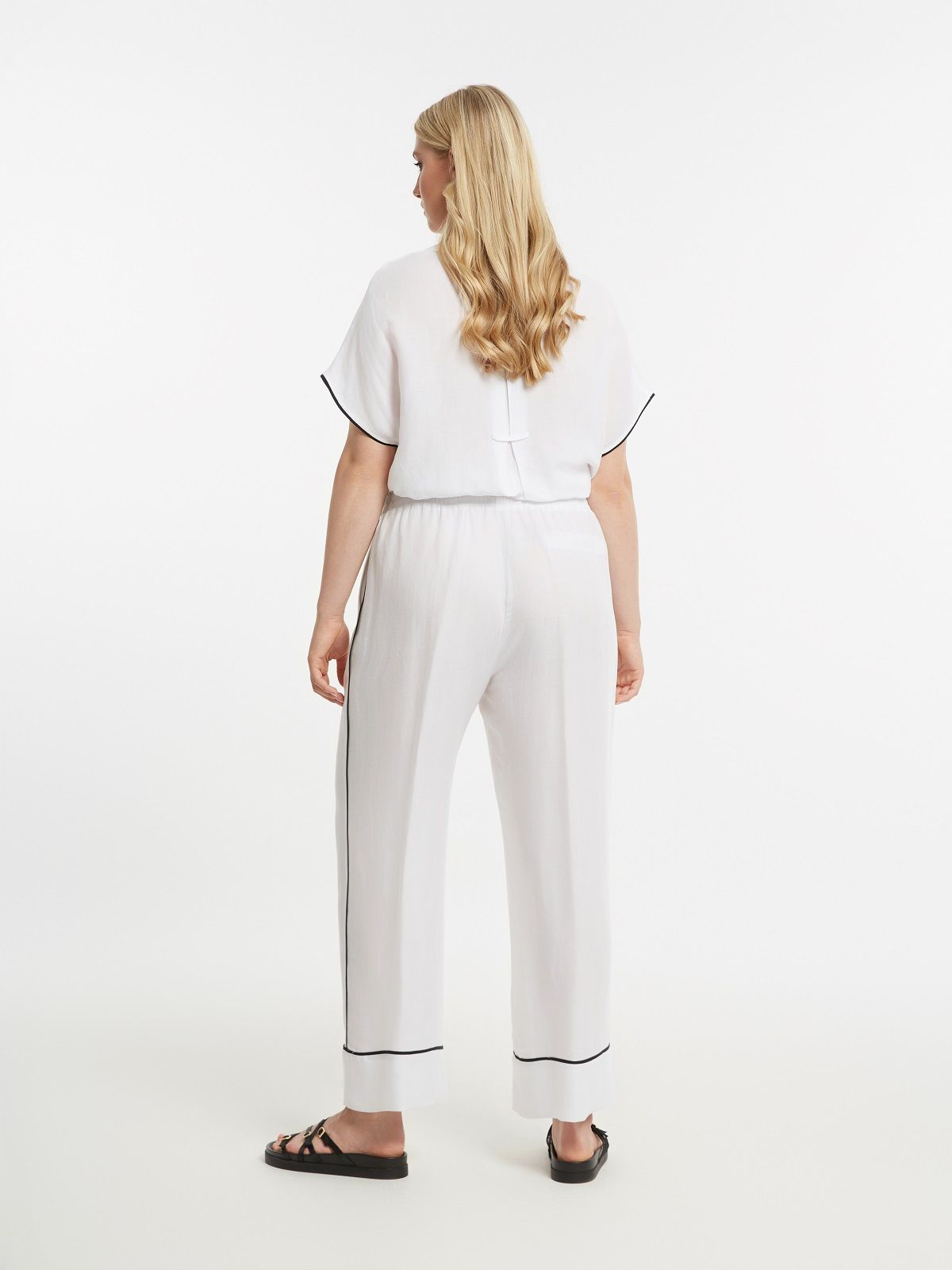 Брюки-палаццо женские черные с белым лампасом