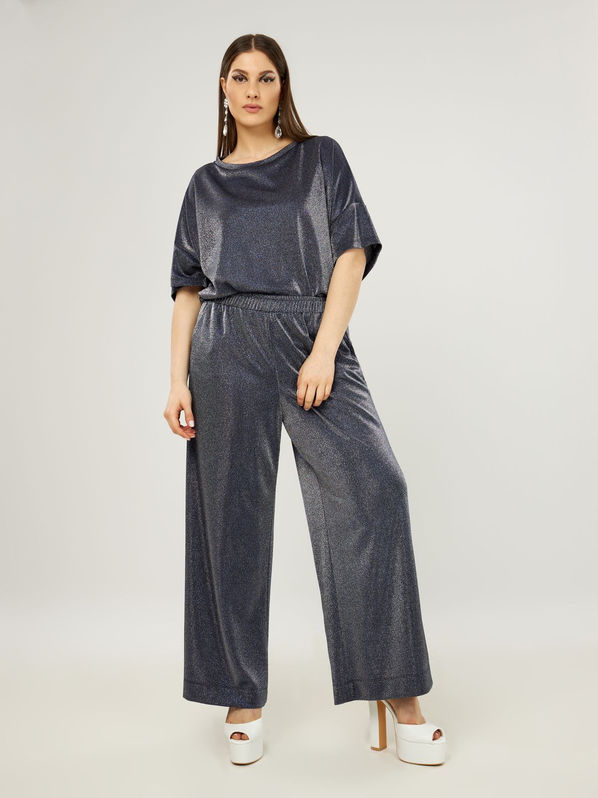 Блестящие нарядные брюки прямого кроя с эластичным поясом