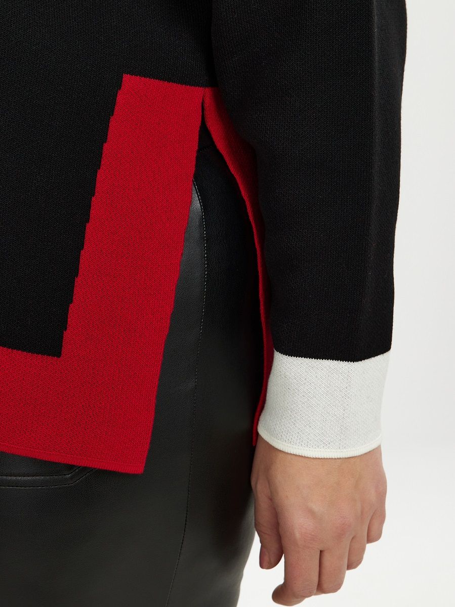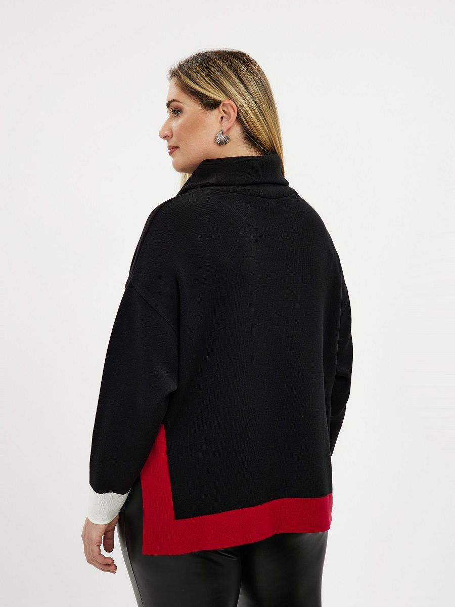 Джемпер с высоким воротом и красной отделкой по низу