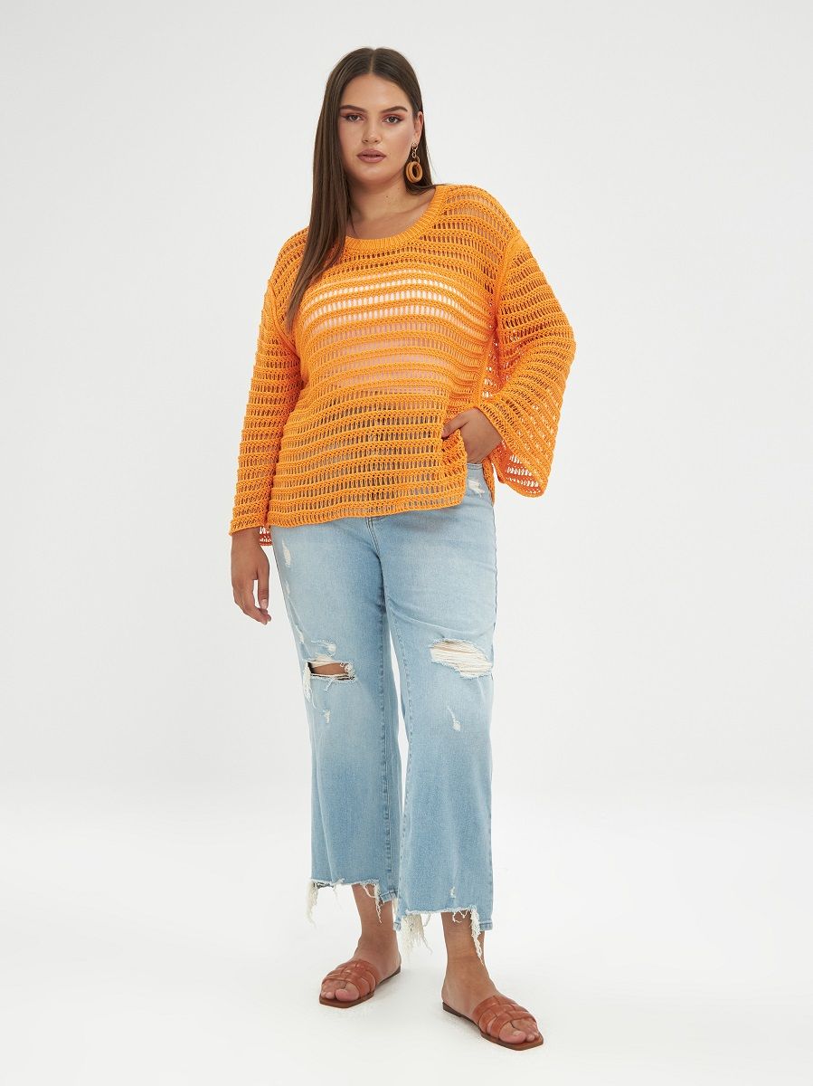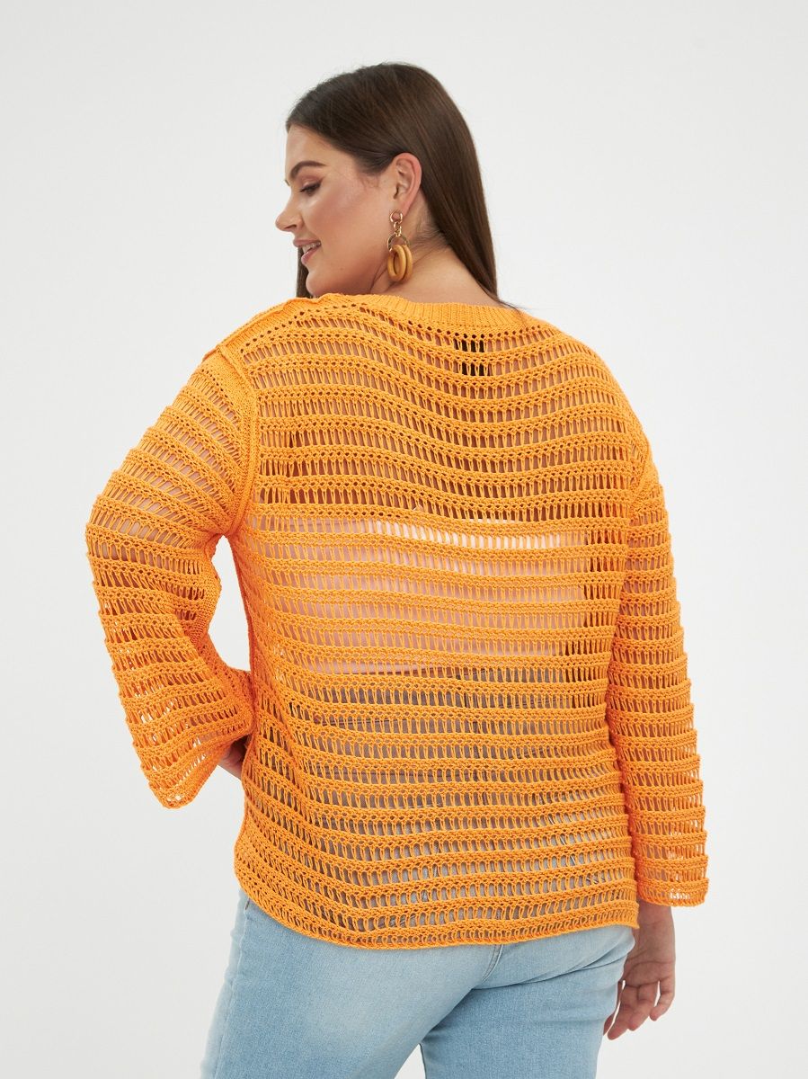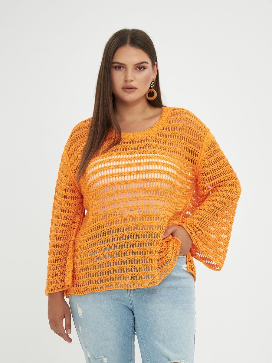 Джемпер-сетка вязанный с широким рукавом, цвет- оранж