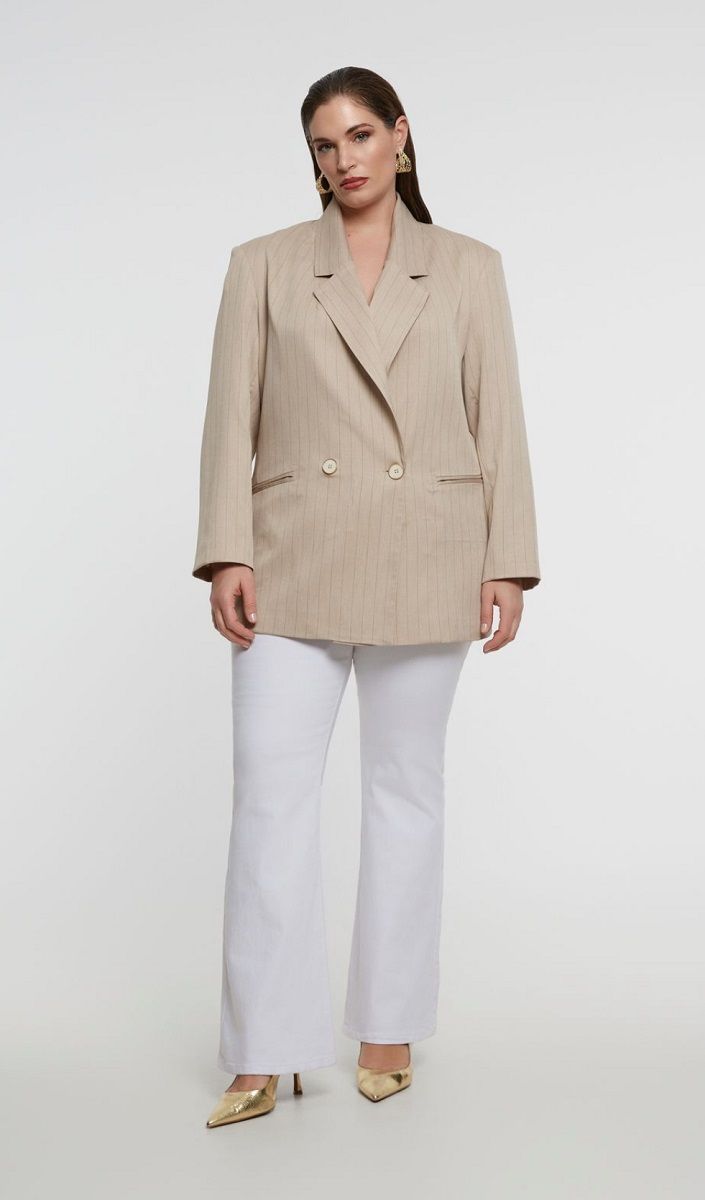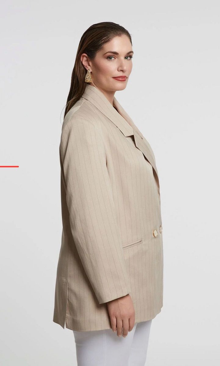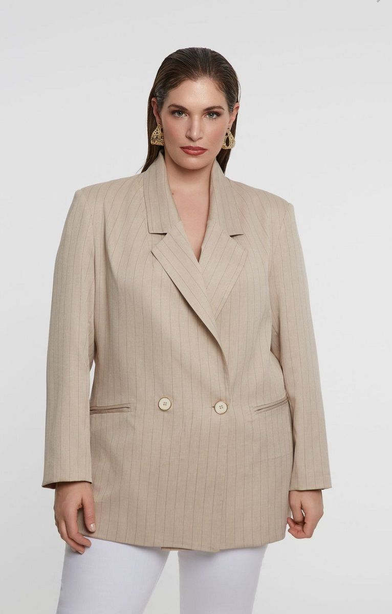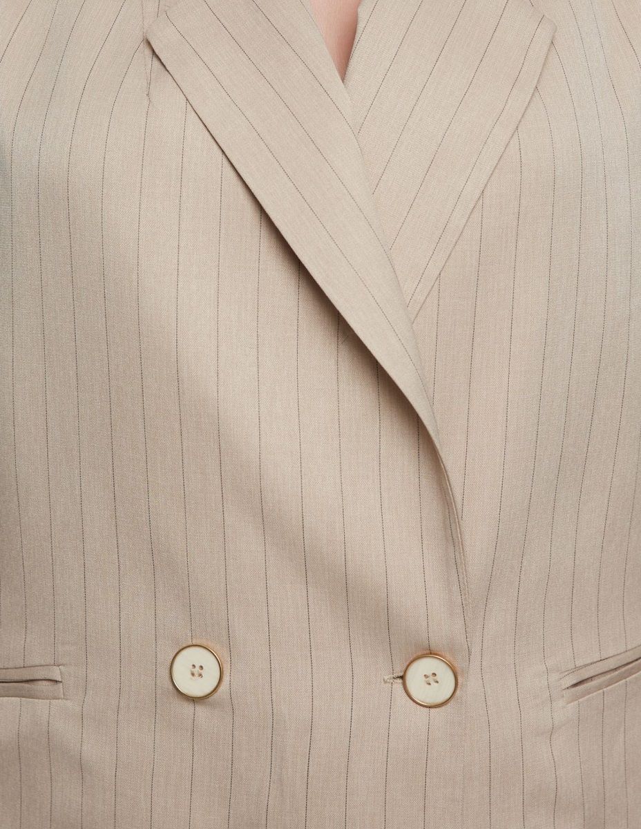 Жакет двухбортный бежевый в полоску