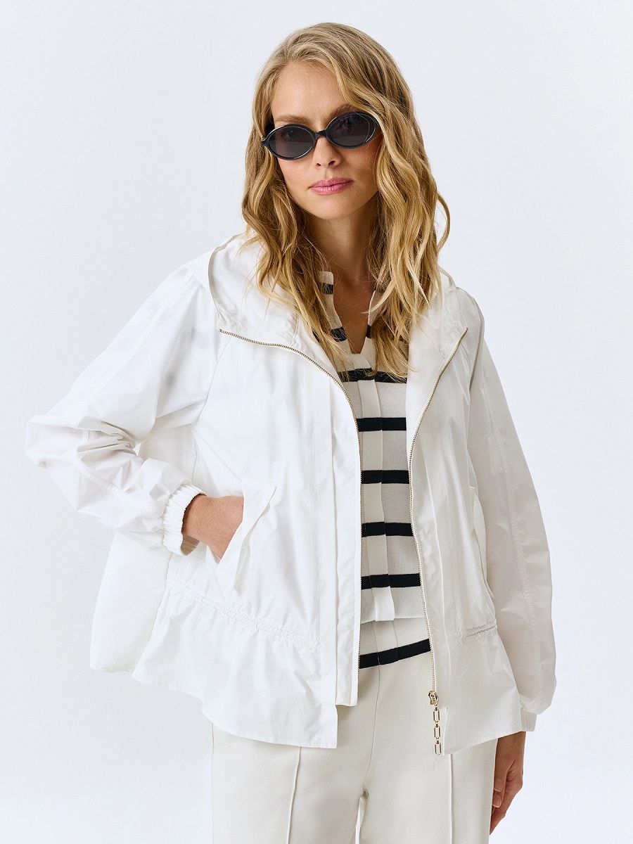 Легкая ветровка из смесового хлопка и нейлона свободного силуэта. Капюшон съемный