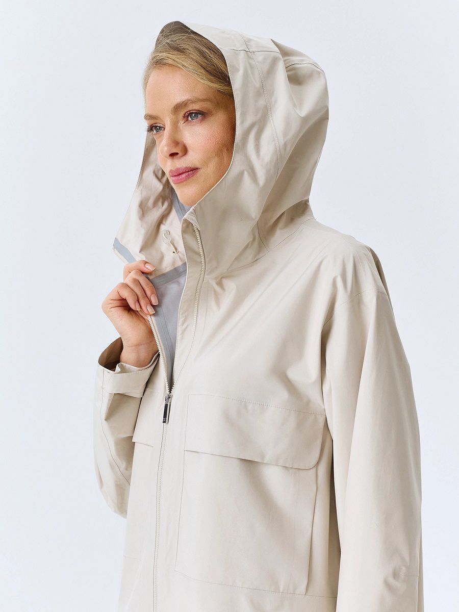 Легкая ветровка из смесового хлопка и нейлона свободного силуэта. Капюшон съемный
