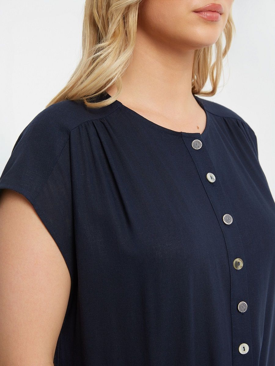 Платье-рубашка для полных женщин, цвет - темно-синий
