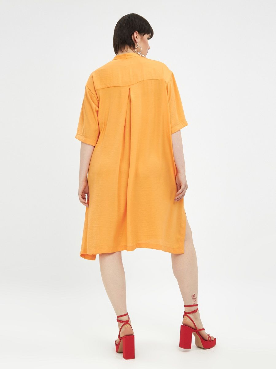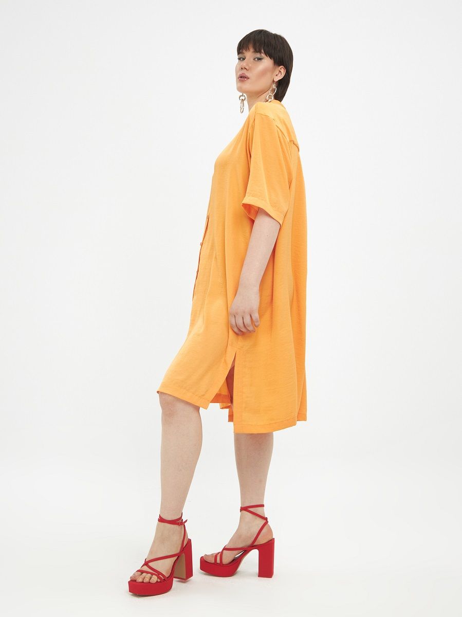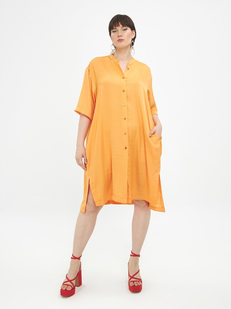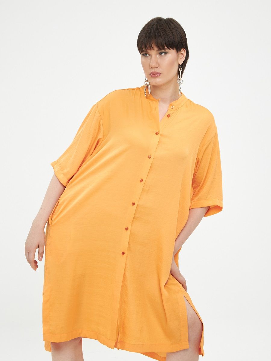 Платье-рубашка для полных женщин, цвет - папайя, черный