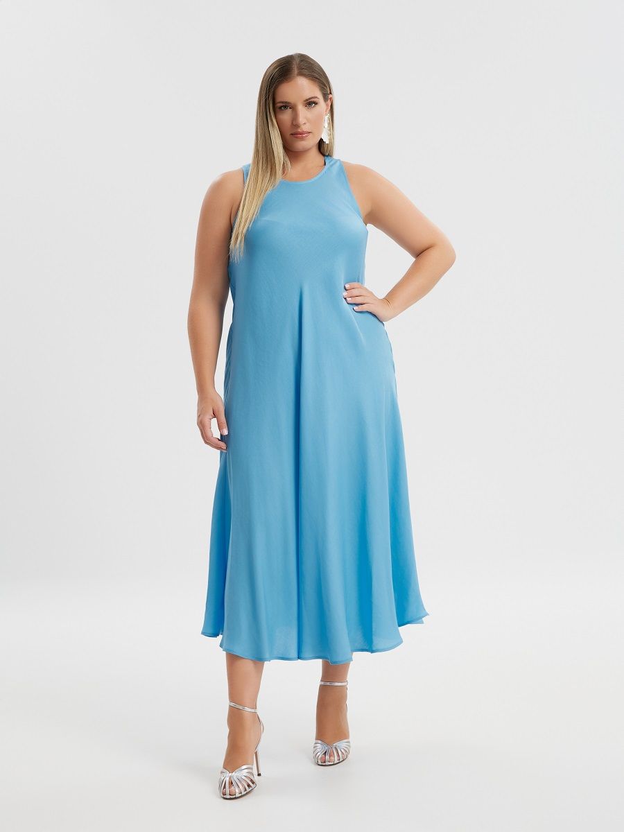 Платье с открытыми плечами бирюзовое