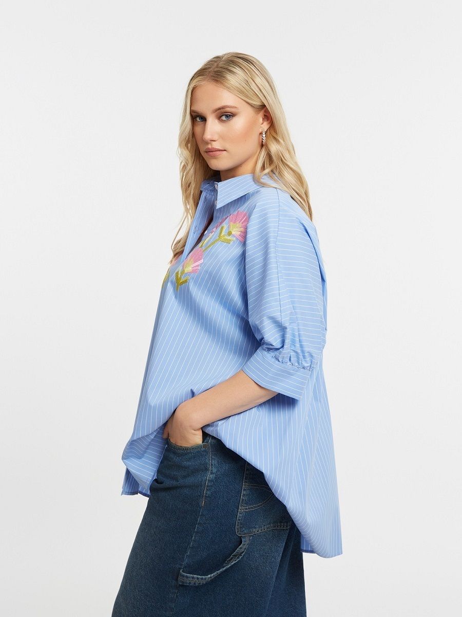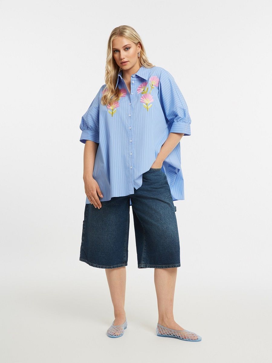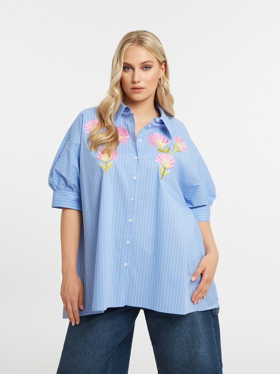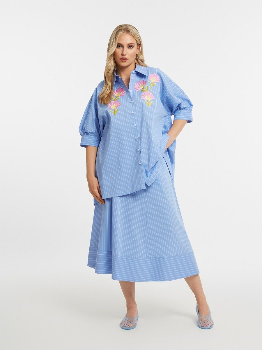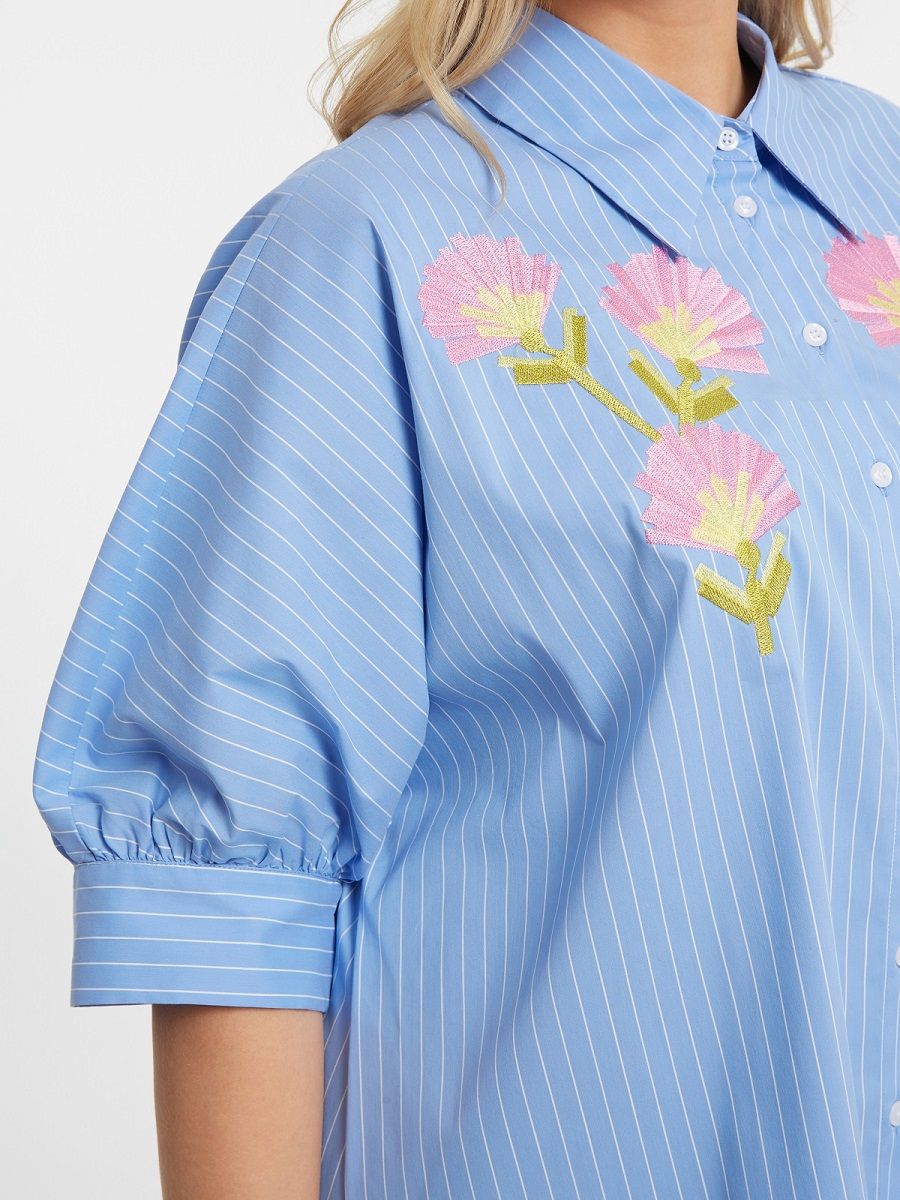 Рубашка голубая в полоску с вышивкой