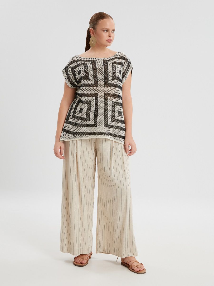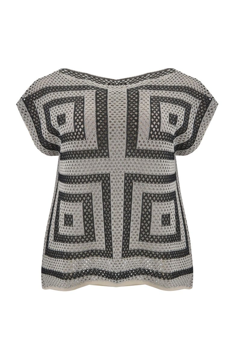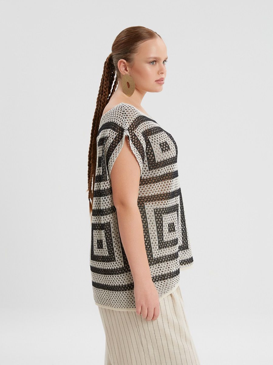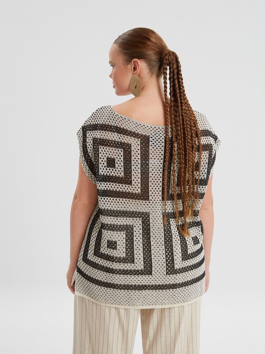 Топ летний вязанный сетка с прямоугольным орнаментом