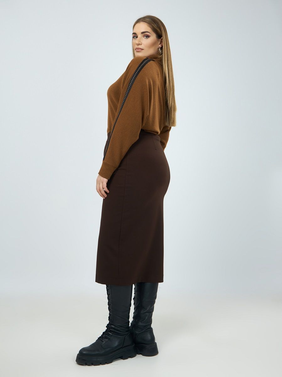 Трикотажная юбка миди коричневая